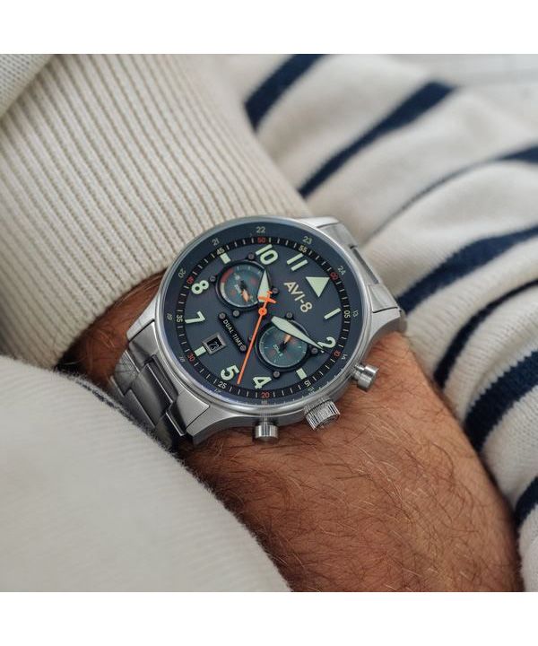 AVI-8 Hawker Hurricane Carey Dual Time Gutersloh rostfritt stål Blue Dial AV-4088-22 herrklocka