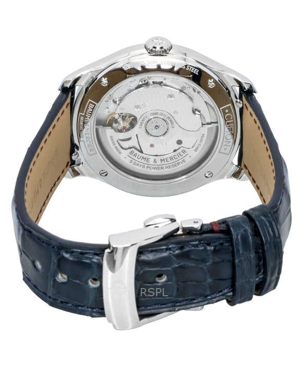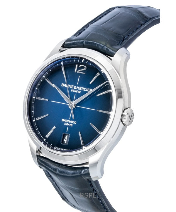 Baume & Mercier Clifton läderarmband blå urtavla automatisk M0A10771 herrklocka