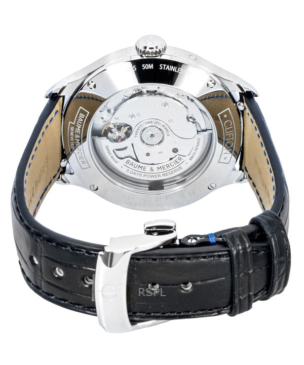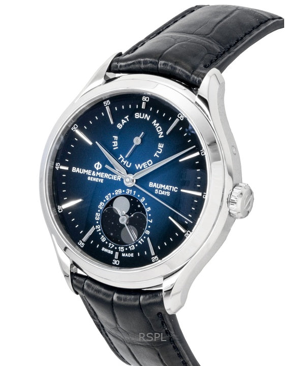 Baume & Mercier Clifton läderrem månfas blå urtavla automatisk M0A10593 herrklocka