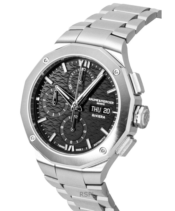 Baume & Mercier Riviera kronograf rostfritt stål svart urtavla automatisk M0A10825 100M herrklocka