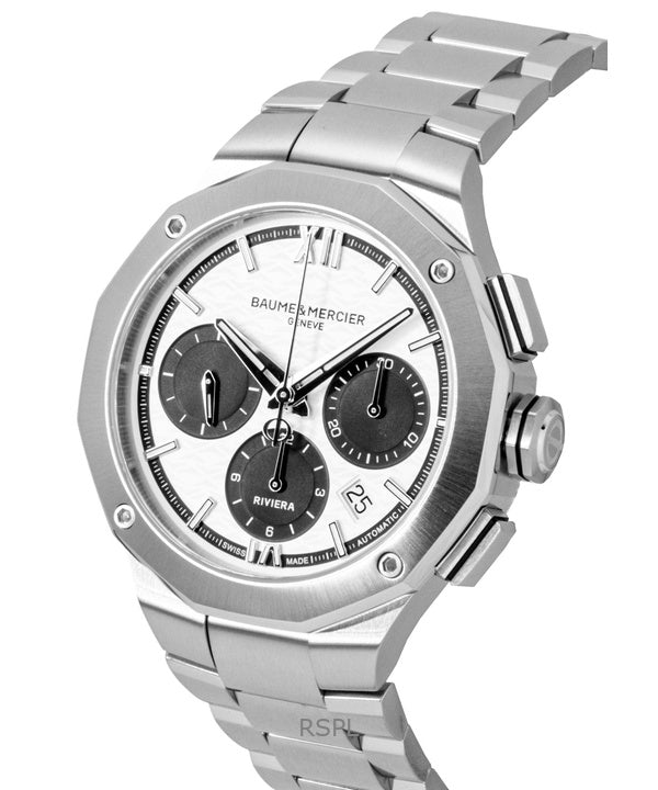 Baume & Mercier Riviera kronograf rostfritt stål vit urtavla automatisk M0A10827 100M herrklocka