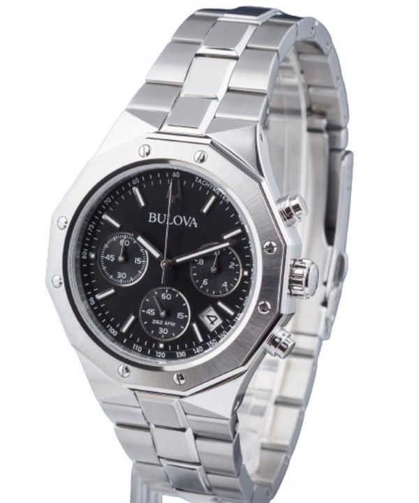 Bulova Classic Precisionist Octagon Chronograph Rostfritt stål Svart Urtavla Quartz 96B410 100M Herrklocka
