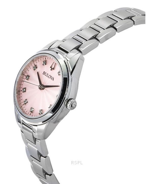 Bulova Sutton Rostfritt stål Diamantaccenter Rosa Urtavla Quartz 96P249 Damklocka
