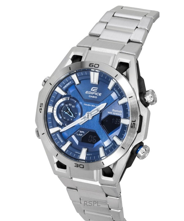 Casio Edifice analog digital rostfritt stål blå urtavla solcellsklocka ECB-2300D-2A 100M herrklocka