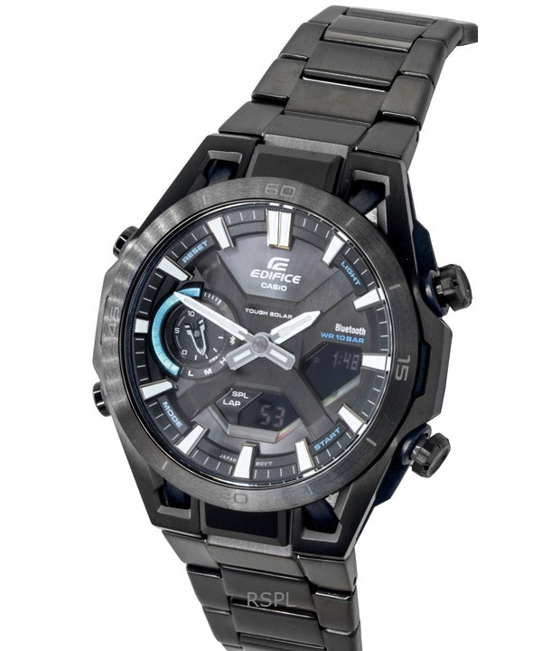 Casio Edifice analog digital rostfritt stål svart urtavla solcellsklocka ECB-2300DC-1A 100M herrklocka