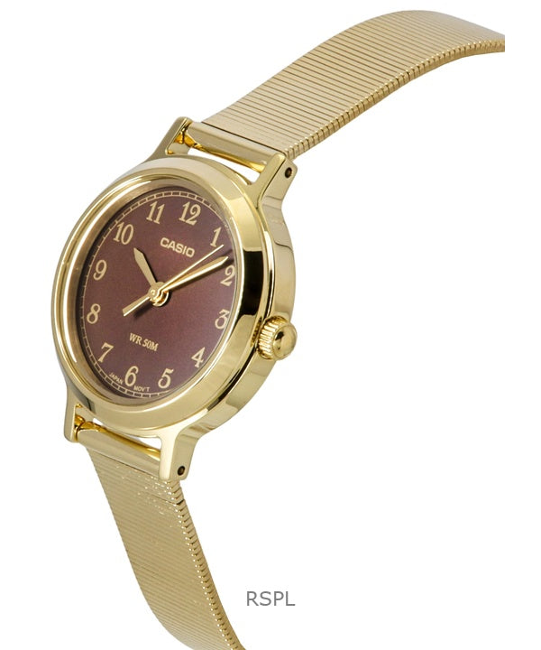 Casio Standard Analog Gold Tone Rostfritt stål Brun Urtavla Quartz LTP-B170G-5BV Damklocka