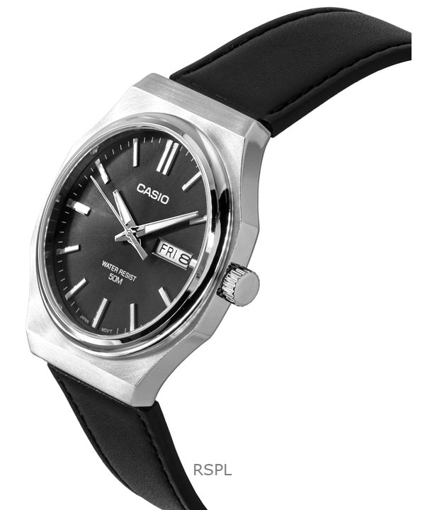 Casio Standard Analog Läderrem Grå Urtavla Quartz MTP-E735L-8AV herrklocka