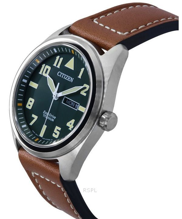 Citizen Eco-Drive Super Titanium Läderrem Grön Urtavla BM8560-11X 100M herrklocka