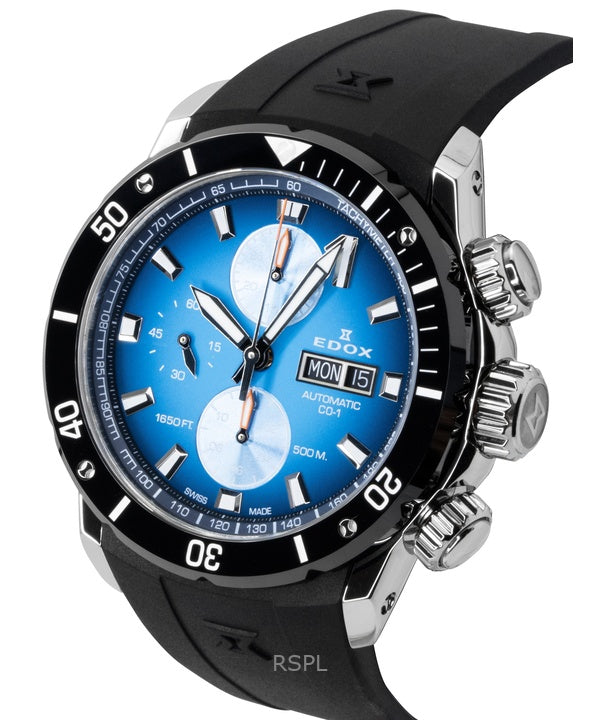 Edox CO-1 kronograf gummiband blå urtavla automatisk dykarklocka 01128-3NOCA-BUIDN 500M herrklocka