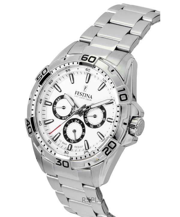 Festina Rostfritt Stål Multifunktion Vit Urtavla Quartz F20623-1 100M Herrklocka