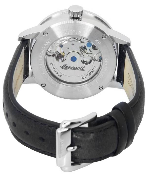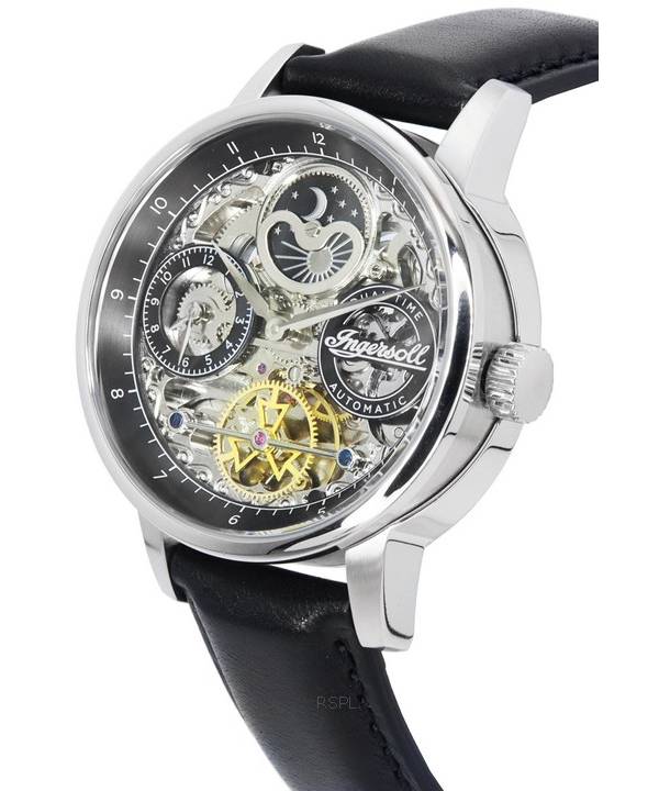 Ingersoll The Jazz Sun and Moon Phase Läderrem Skeleton Silver Dial Automatisk I07701 Herrklocka