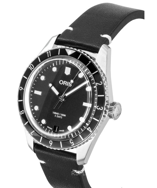 Oris Divers Sixty Five 12H Läderarmband Svart Urtavla Automatisk 01 400 7772 4054-07 5 20 82 100M Herrklocka