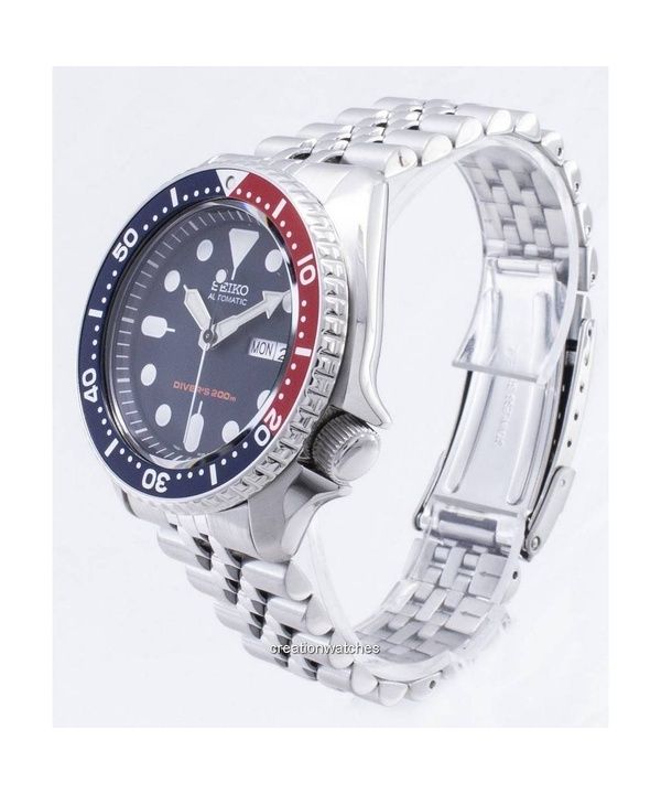Renoverad Seiko Jubilee rostfritt stål mörkblå urtavla Automatisk dykare SKX009K2 200M herrklocka