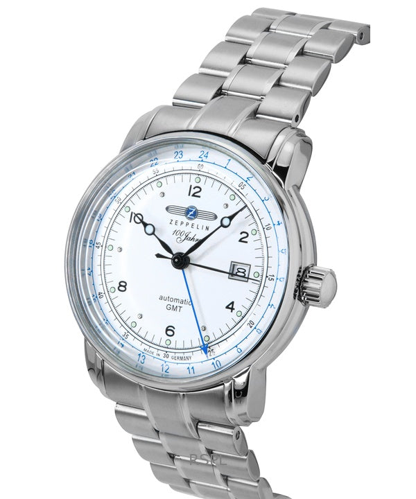 Zeppelin 100 Jahre GMT rostfritt stål silverfärgad urtavla automatisk 8666MB1 herrklocka